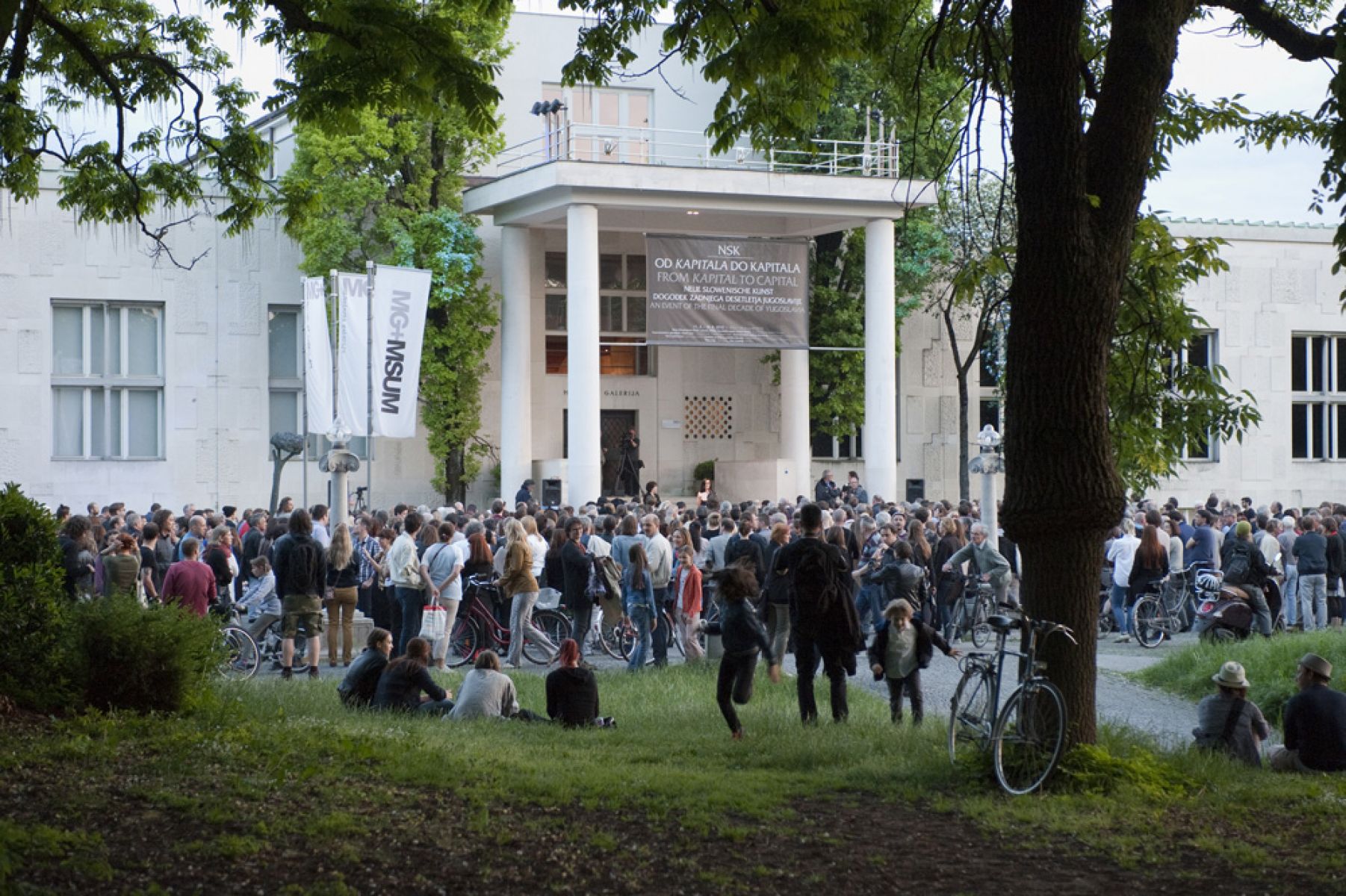 The exhibition NSK from Kapital to Capital covers a period that marked the final decade of Yugoslavia, highlighting the fact that NSK was no less a critic of the coming global capitalism than of the failing outgoing socialism. In the latter respect it differed both notably and fundamentally from the liberal critique of socialism. Rather than employing the standard forms of artistic critique or irony, NSK based its approach on subversive affirmation and over-identification, articulating, among other things, the kind of society the groups envisioned after the collapse of socialism. Founding the NSK State in Time in 1992, they opted for a global community based not on territorial or economic principles but on aesthetics and thought.