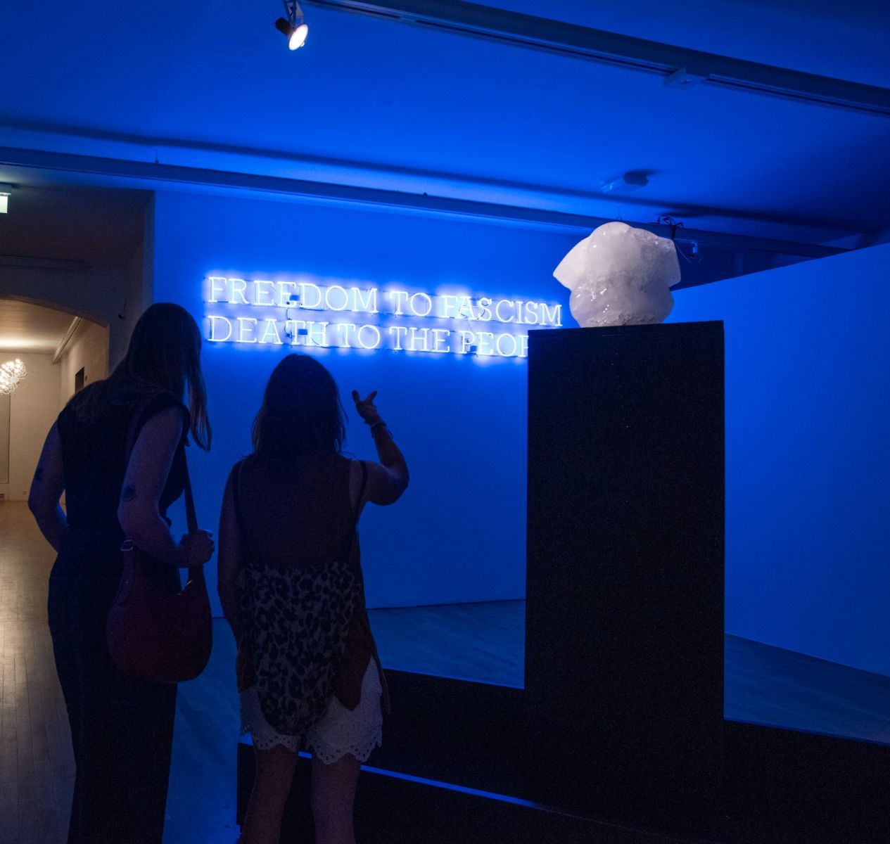 Pričeli bomo z ogledom samostojne razstave Kratka histerija časa, mednarodno prepoznavne umetnice Maje Bajević, ki s pomočjo neonskih zapisov, ledu, zvoka in kolaža pripoveduje o naši skupni preteklosti in prihodnosti.