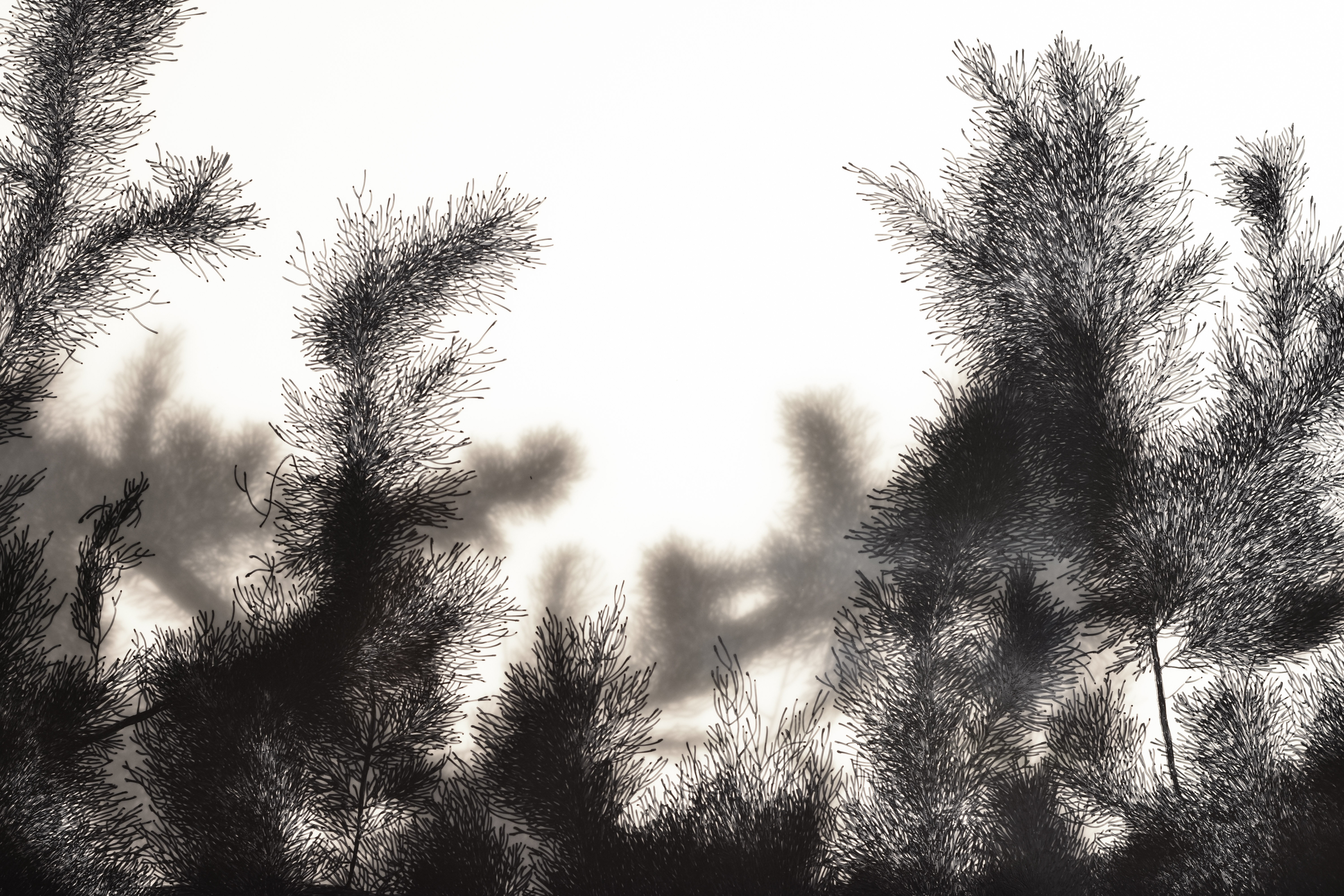 Tina Konec, Serija Mangani, 2023, tuš na foliji, 60 x 60 cm (detajl 2). Foto Marko Tušek.
