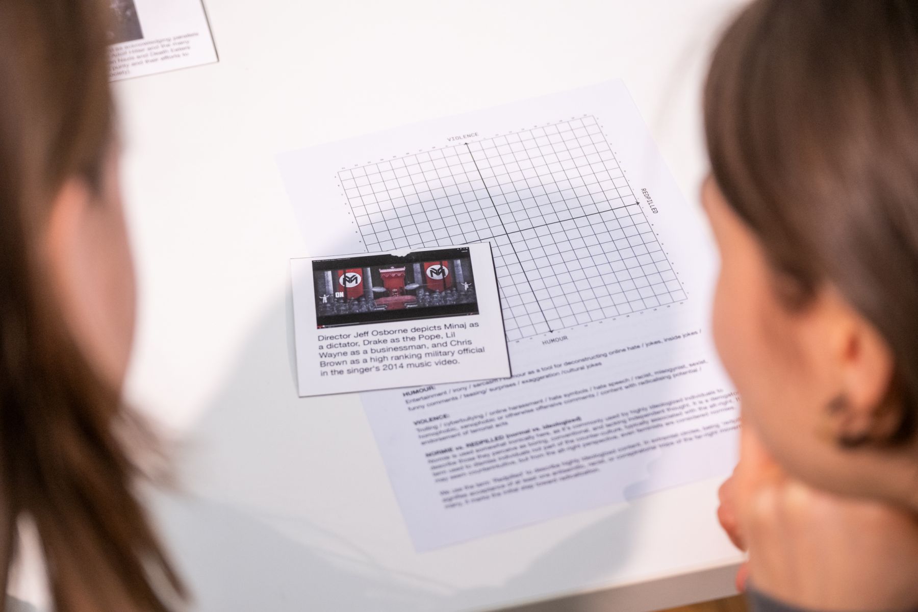 Praktično delo bo vključevalo ustvarjanje zemljevida vizualne kulture, podobnega političnemu kompasu, v tematsko razdeljenih skupinah. Teme bodo kultura memov, prisvajanje simbolov, odnos med fašizmom in trenutnimi trendi telesne podobe, generacijski prepad, obujanje umetnosti iz druge svetovne vojne na TikToku in čaščenje slavnih zločincev v pop kulturi.